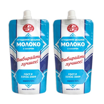 Молоко цельное сгущенное с сахаром ГОСТ, 270г, 8.5%, дой-пак