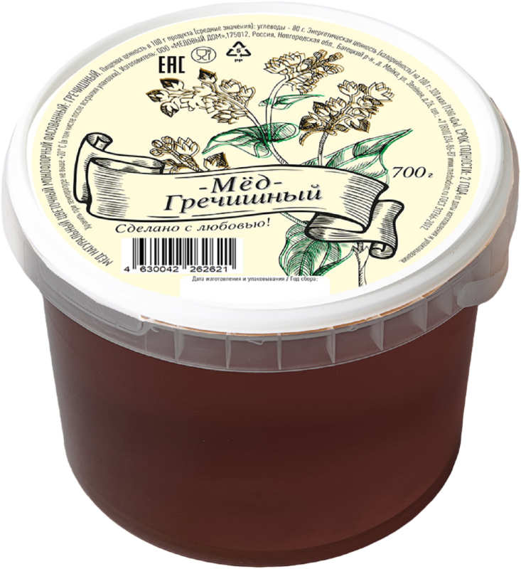 Мед цветочный гречишный, 700г, пласт.упаковка