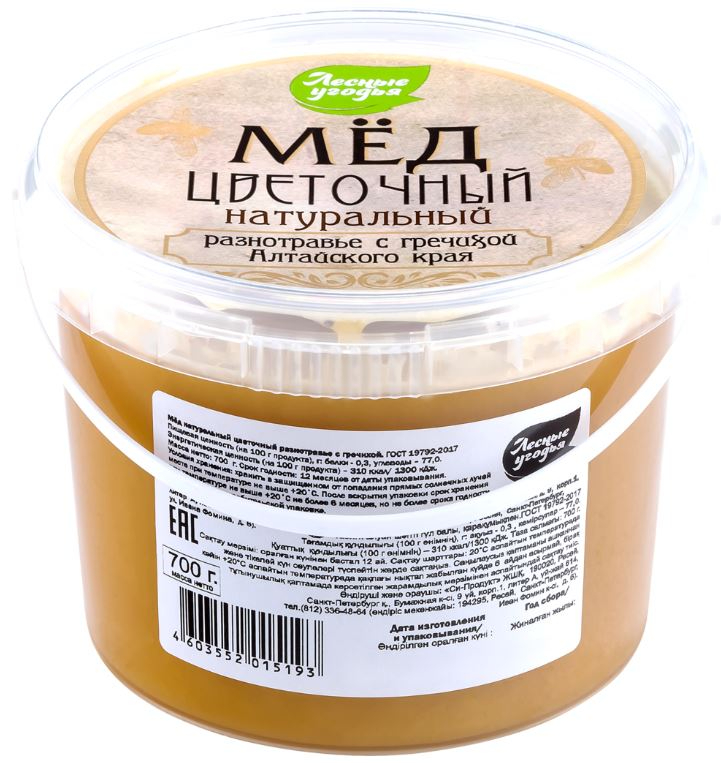 Мед цветочный разнотравье с гречихой Алтайского края, 700г, пласт.упаковка