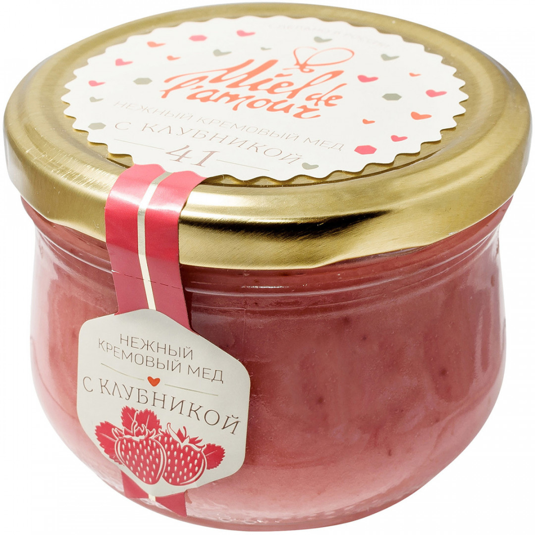 Мед кремовый цветочный с клубникой, 250г, стекло