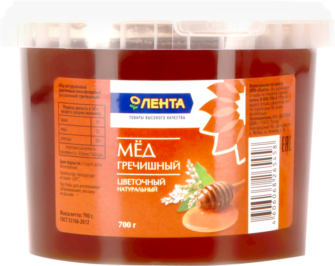 Мед цветочный гречишный, 700г, пласт.упаковка