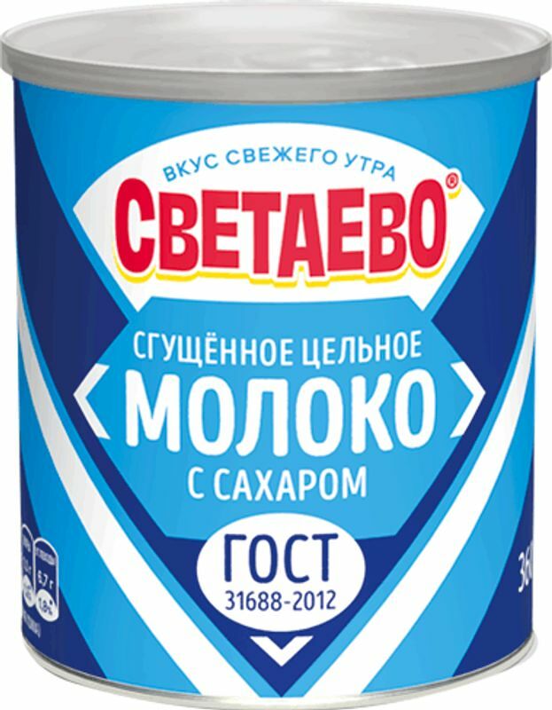 Молоко сгущенное цельное с сахаром ГОСТ, 360г, 8.5%, жест.упаковка