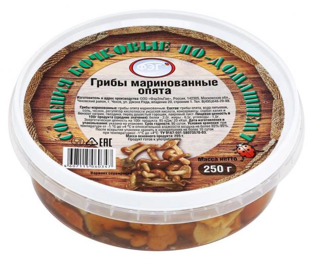 Грибы опята маринованные с лучком и ароматными специями, 250г, пласт.упаковка