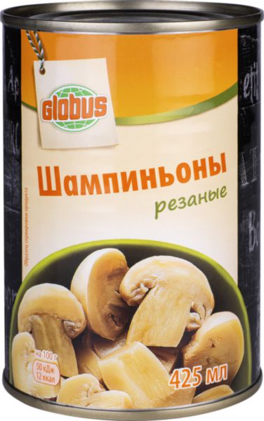 Шампиньоны резаные, 400г / 425мл, жест.упаковка
