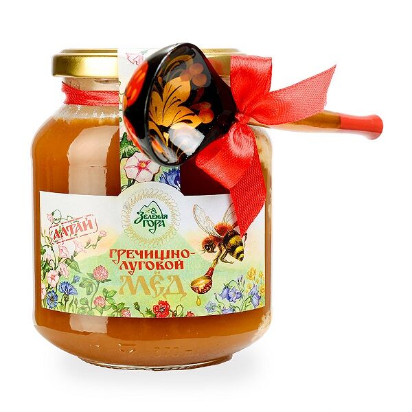 Мед Алтайский гречишно-луговой с деревянной ложкой, 400г, стекло