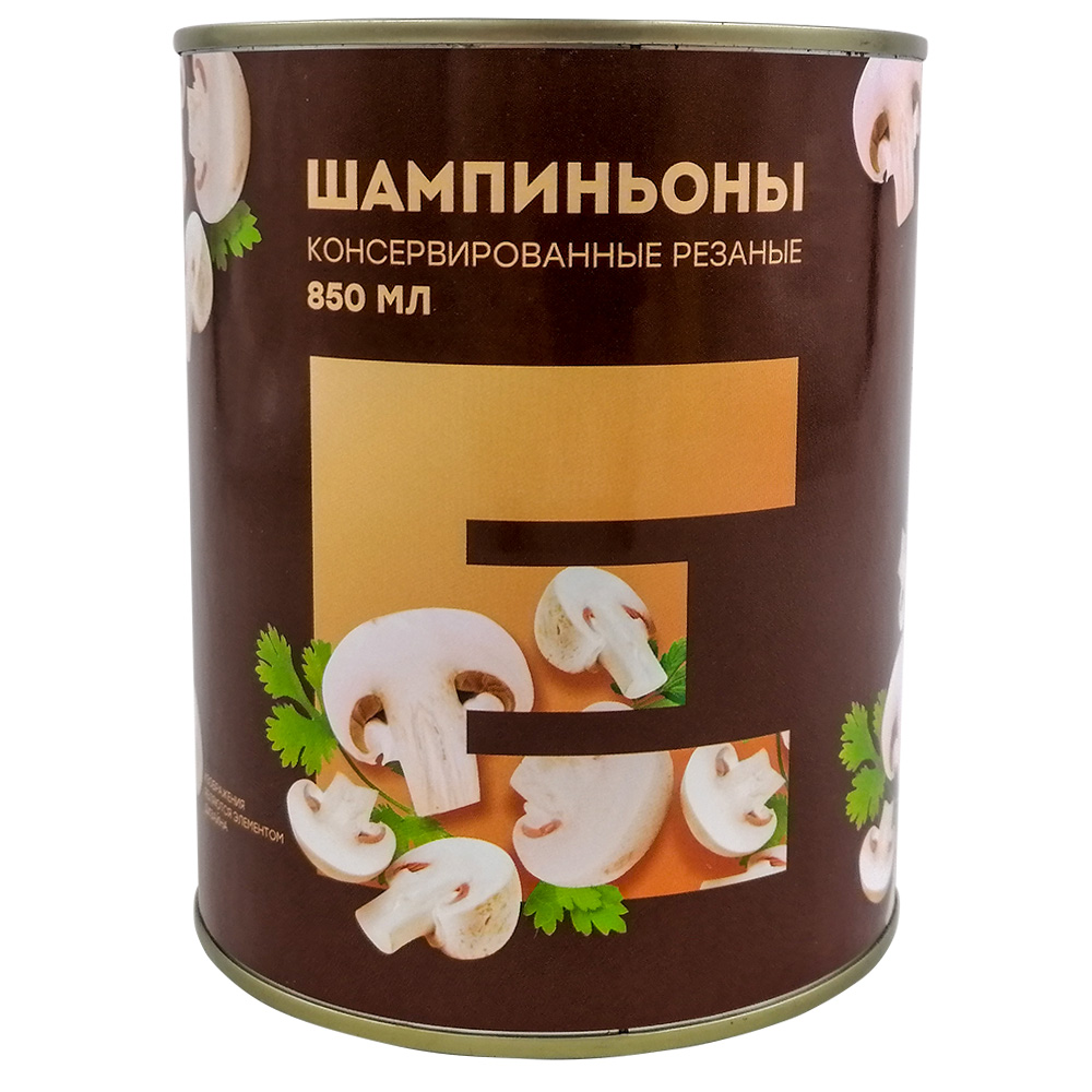 Шампиньоны консервированные резаные, 800г / 850мл, жест.упаковка