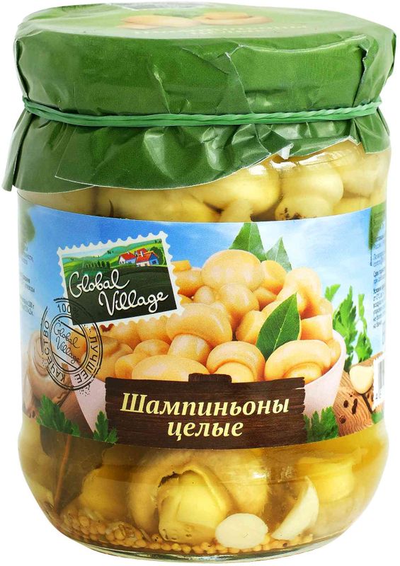 Шампиньоны целые маринованные стерилизованные, 480г, стекло