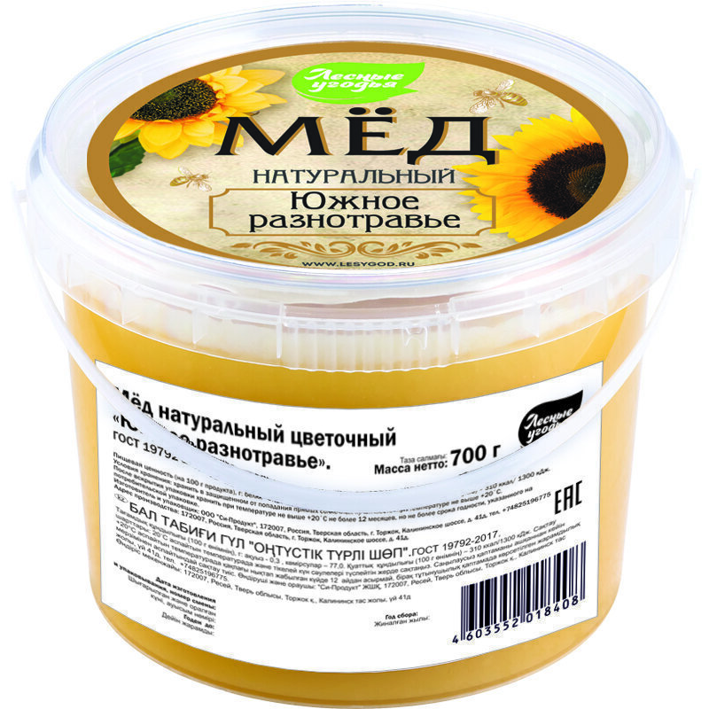 Мед цветочный Южное разнотравье, 700г, пласт.упаковка
