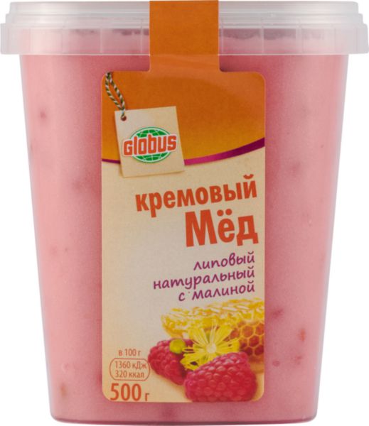 Мед кремовый липовый с малиной, 500г, пласт.упаковка