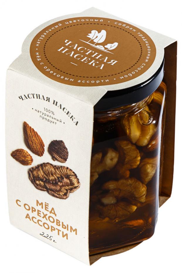 Мед цветочный с ореховым ассорти, 225г, стекло