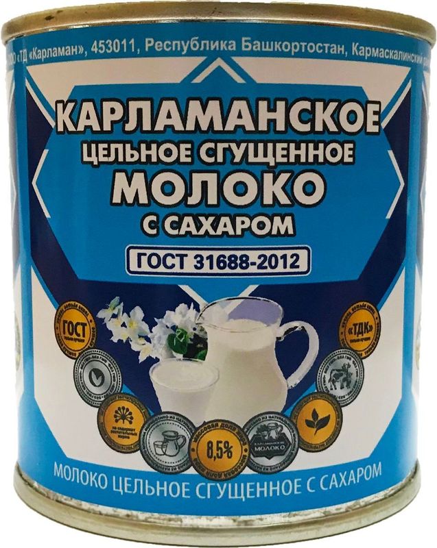 Молоко цельное сгущенное с сахаром, 375г, 8.5%, жест.упаковка
