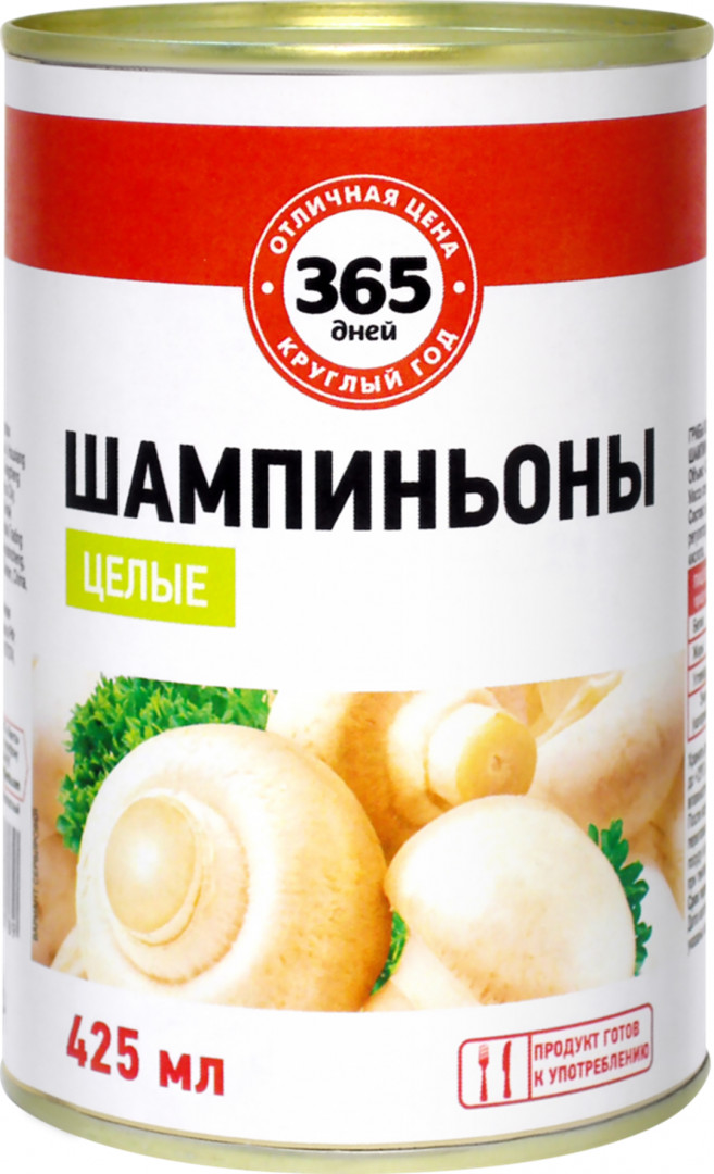Шампиньоны целые, 400г / 425мл, жест.упаковка
