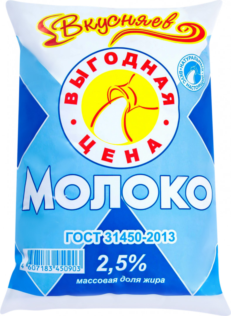Молоко пастеризованное, 800г, 2.5%, фин-пак