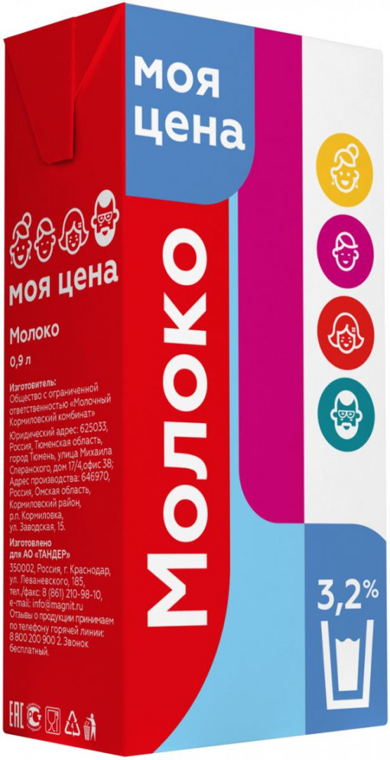 Молоко ультрапастеризованное, 900мл, 3.2%, тетра пак