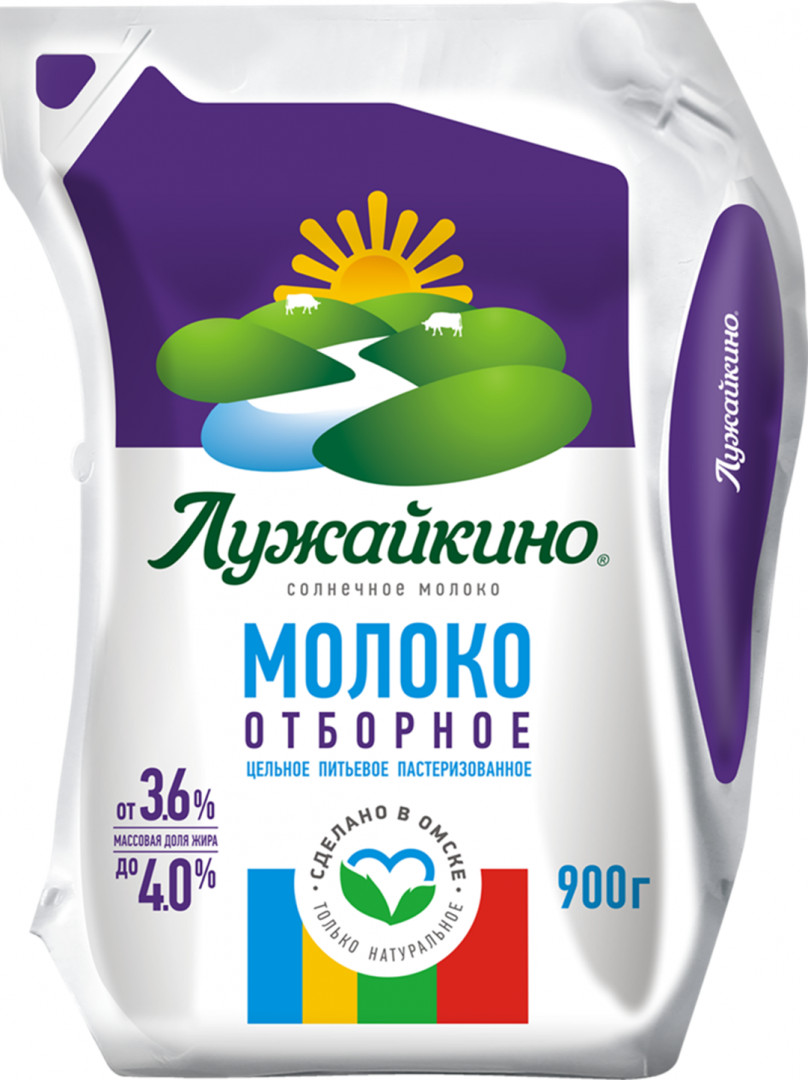 Молоко пастеризованное отборное, 900г, 3.6 - 4%, п/п упаковка