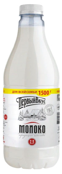 Молоко пастеризованное, 1500г, 2.5%, пласт.бутылка