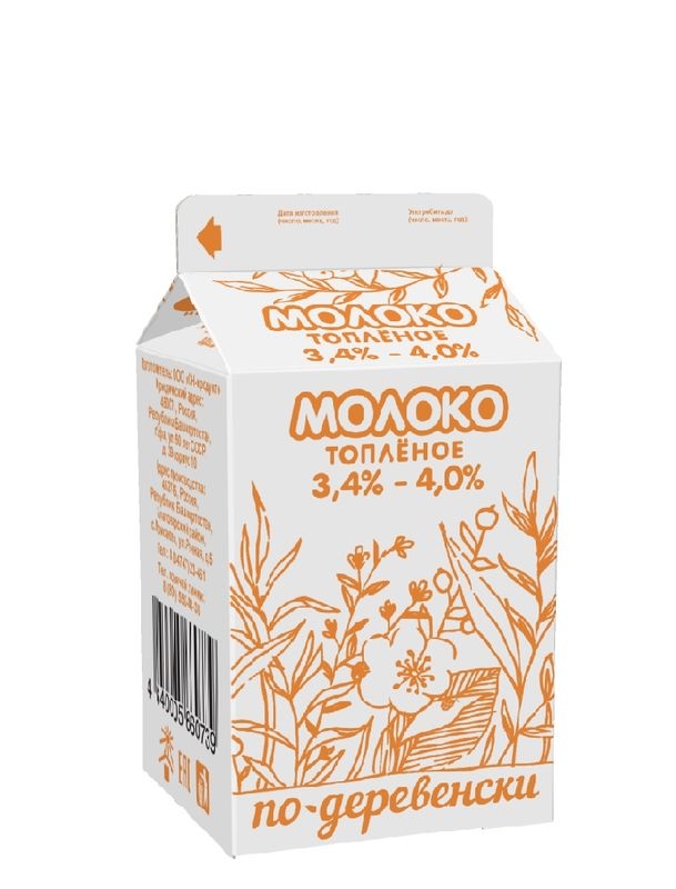 Молоко топленое по-деревенски, 500мл, 3.4 - 4%, тетра пак