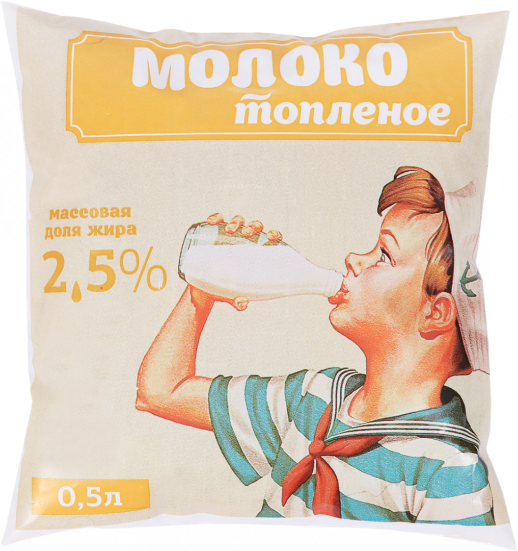 Молоко топленое, 500мл, 2.5%, фин-пак