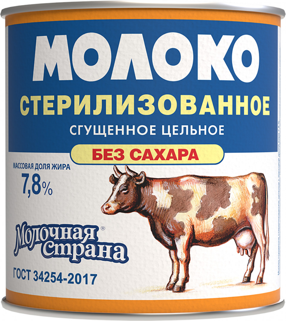 Молоко цельное сгущенное без сахара, 300г, 7.8%, жест.упаковка
