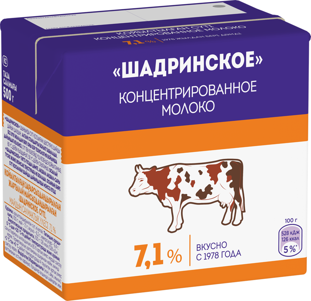 Молоко концентрированное стерилизованное, 500г, 7.1%, тетра пак