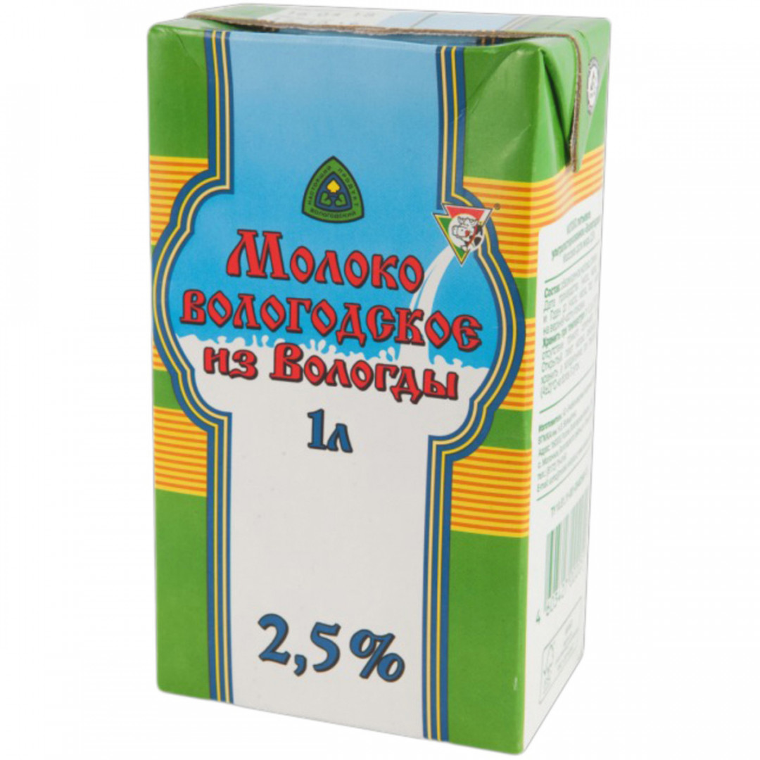 Молоко ультрапастеризованное Вологодское, 1000мл, 2.5%, тетра пак