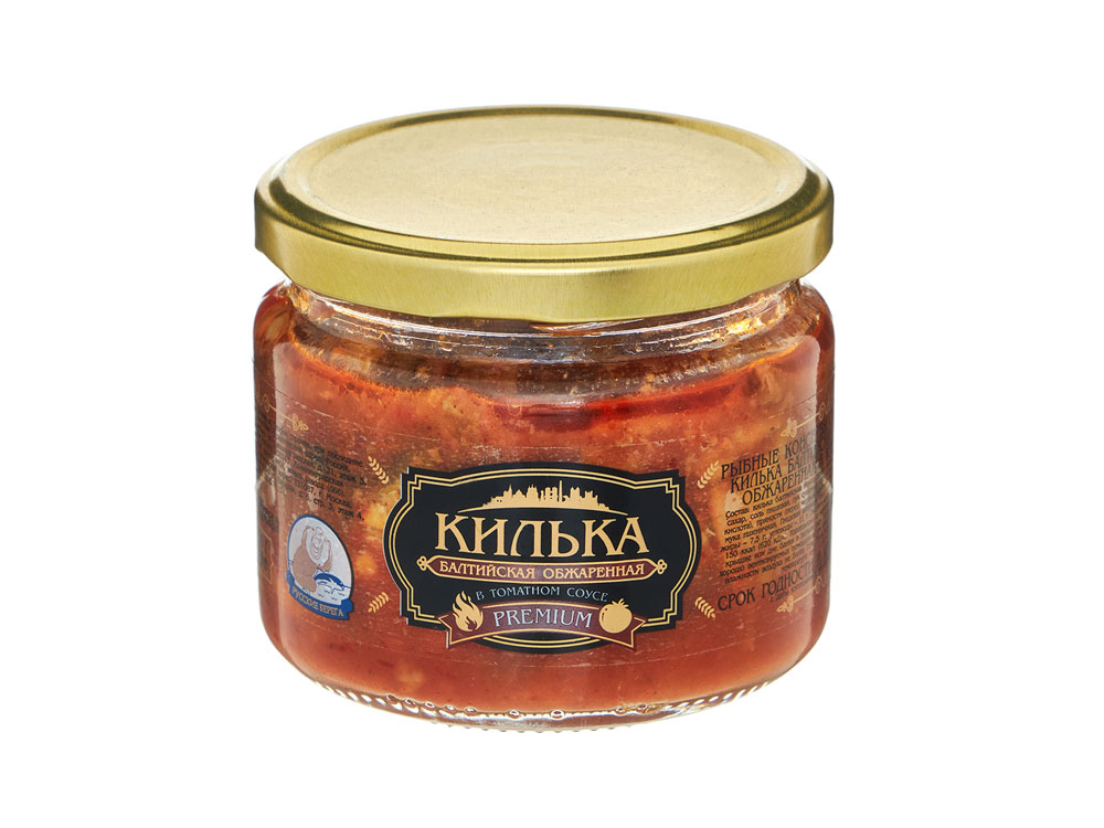 Килька балтийская неразделанная обжаренная в томатном соусе, 250г, стекло
