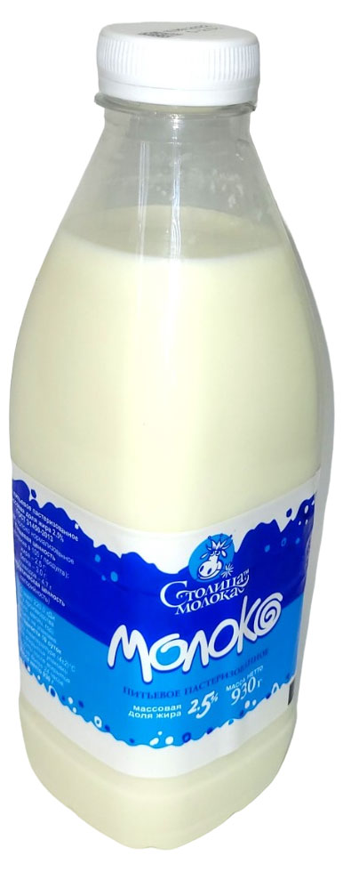 Молоко пастеризованное, 930г, 2.5%, пласт.бутылка