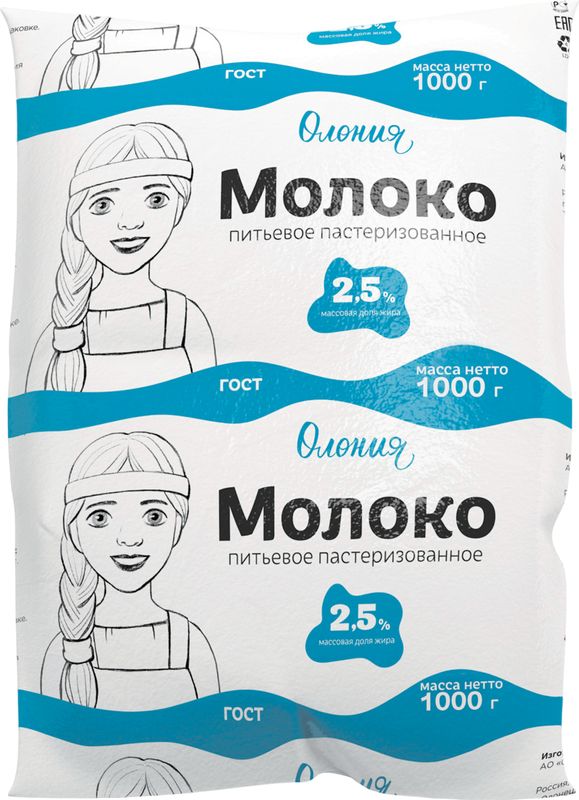 Молоко пастеризованное, 1000г, 2.5%, фин-пак