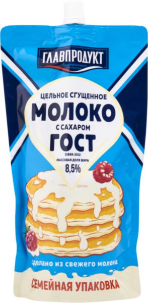 Молоко цельное сгущенное с сахаром ГОСТ, 600г, 8.5%, дой-пак