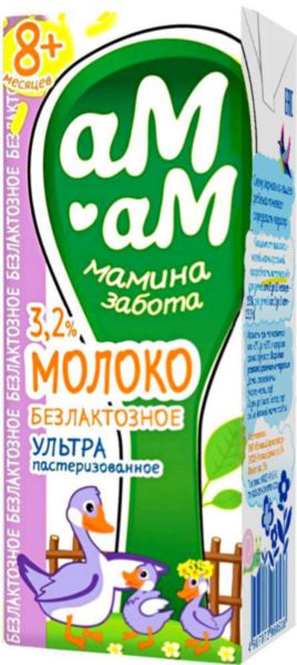 Молоко ультрапастеризованное безлактозное с 8 месяцев, 205г, 3.2%, тетра пак