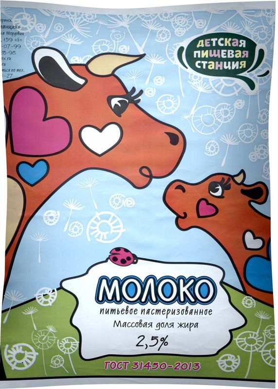 Молоко пастеризованное, 900мл, 2.5%, фин-пак