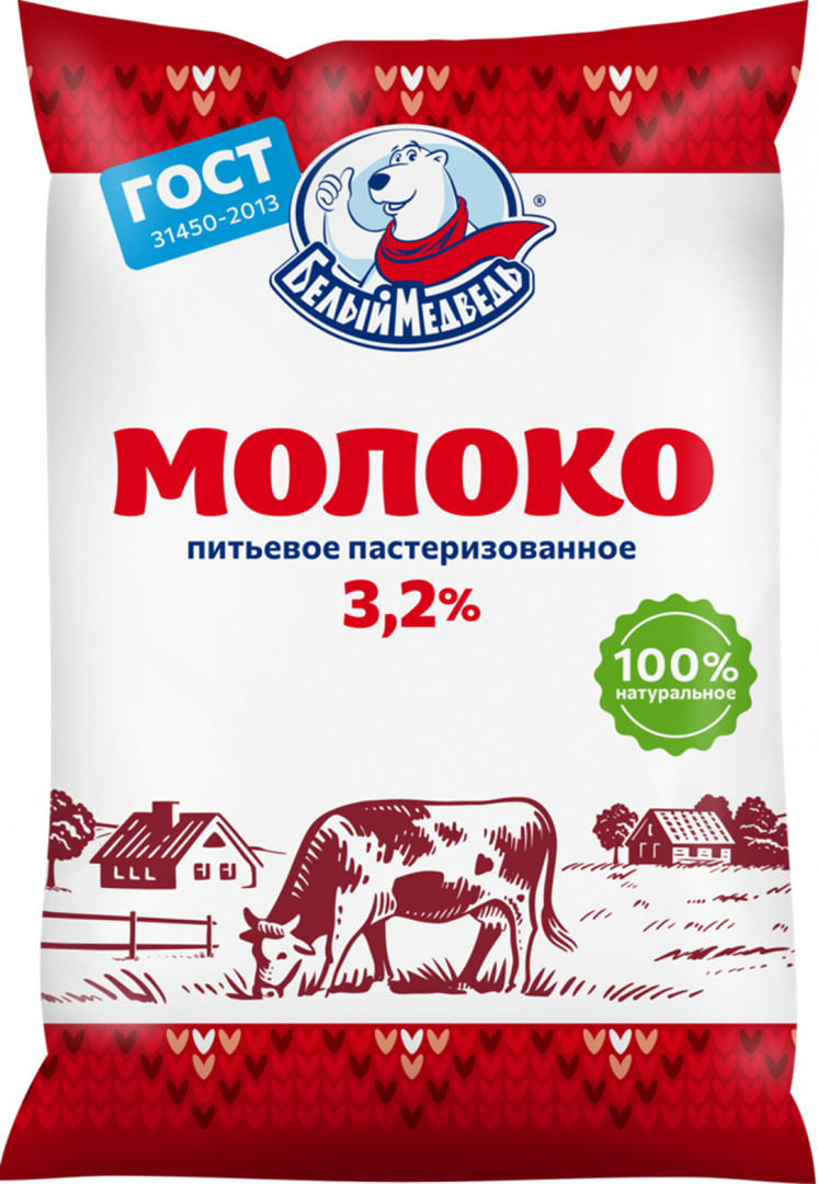 Молоко пастеризованное, 900г, 3.2%, фин-пак