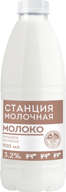 Молоко топленое пастеризованное, 900мл, 3.2%, пласт.бутылка