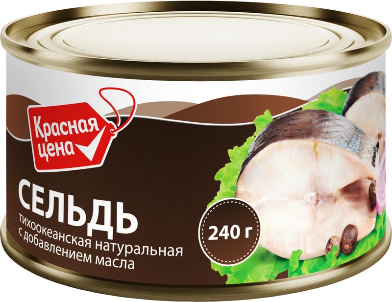 Сельдь тихоокеанская натуральная с добавлением масла, 240г, жест.упаковка