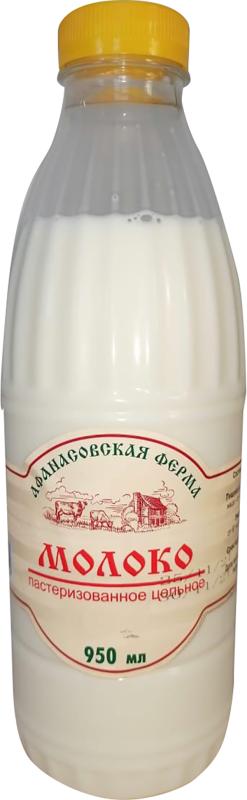 Молоко пастеризованное цельное, 950мл, пласт.бутылка