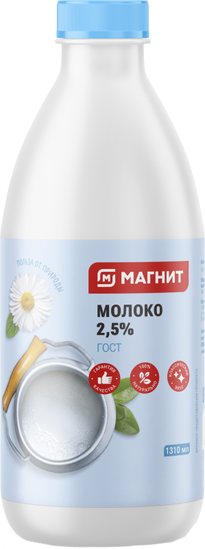 Молоко пастеризованное, 1310мл, 2.5%, пласт.бутылка