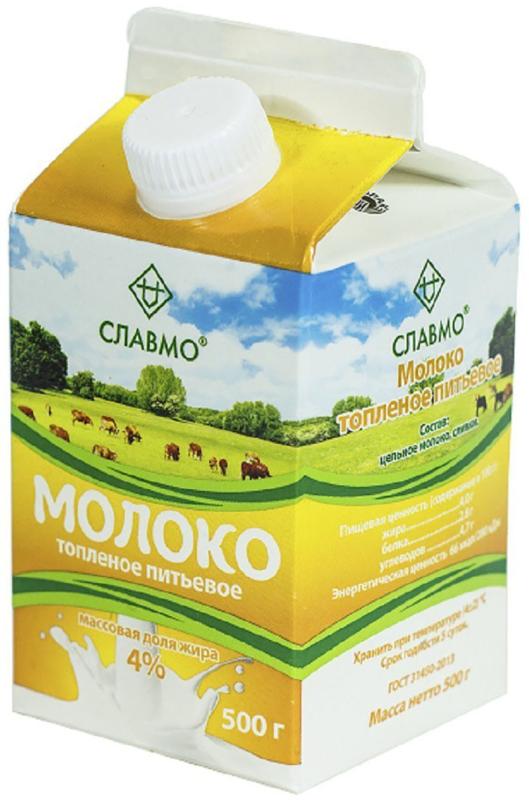 Молоко пастеризованное топленое, 500г, 4%, тетра пак