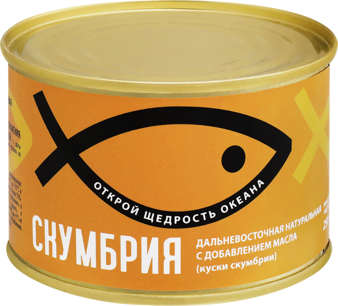 Скумбрия дальневосточная натуральная с добавлением масла, 250г, жест.упаковка