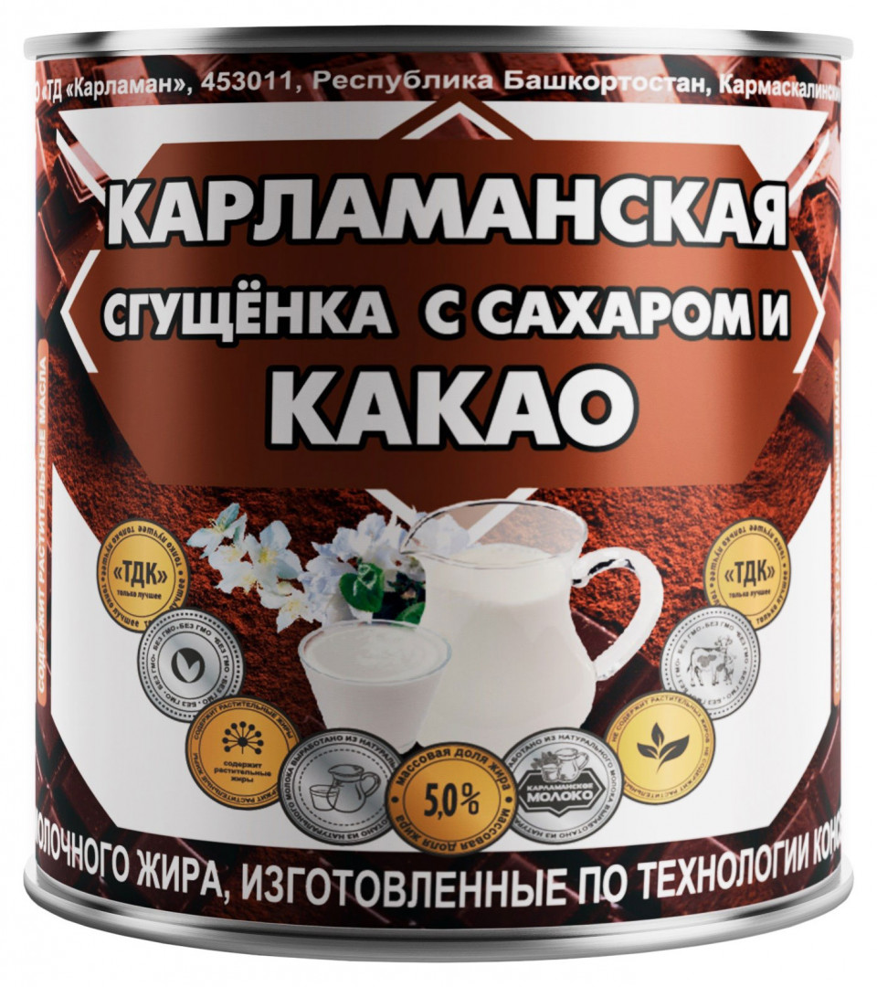 Сгущенка с сахаром и какао, 380г, 5%, жест.упаковка