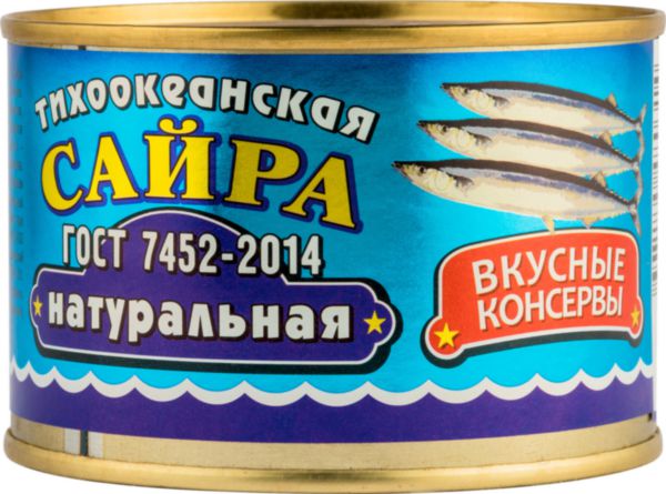 Сайра тихоокеанская натуральная, 245г, жест.упаковка