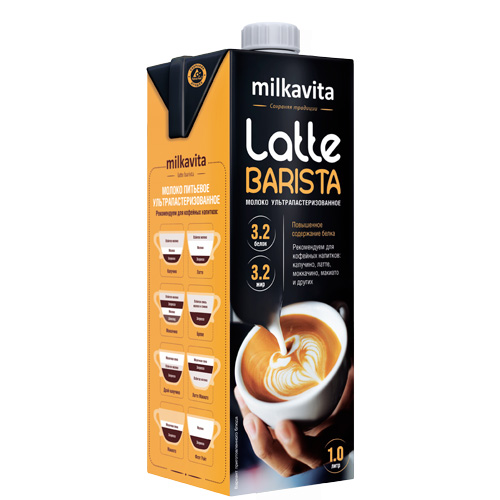Молоко ультрапастеризованное Latte Barista, 1000мл, 3.2%, тетра пак