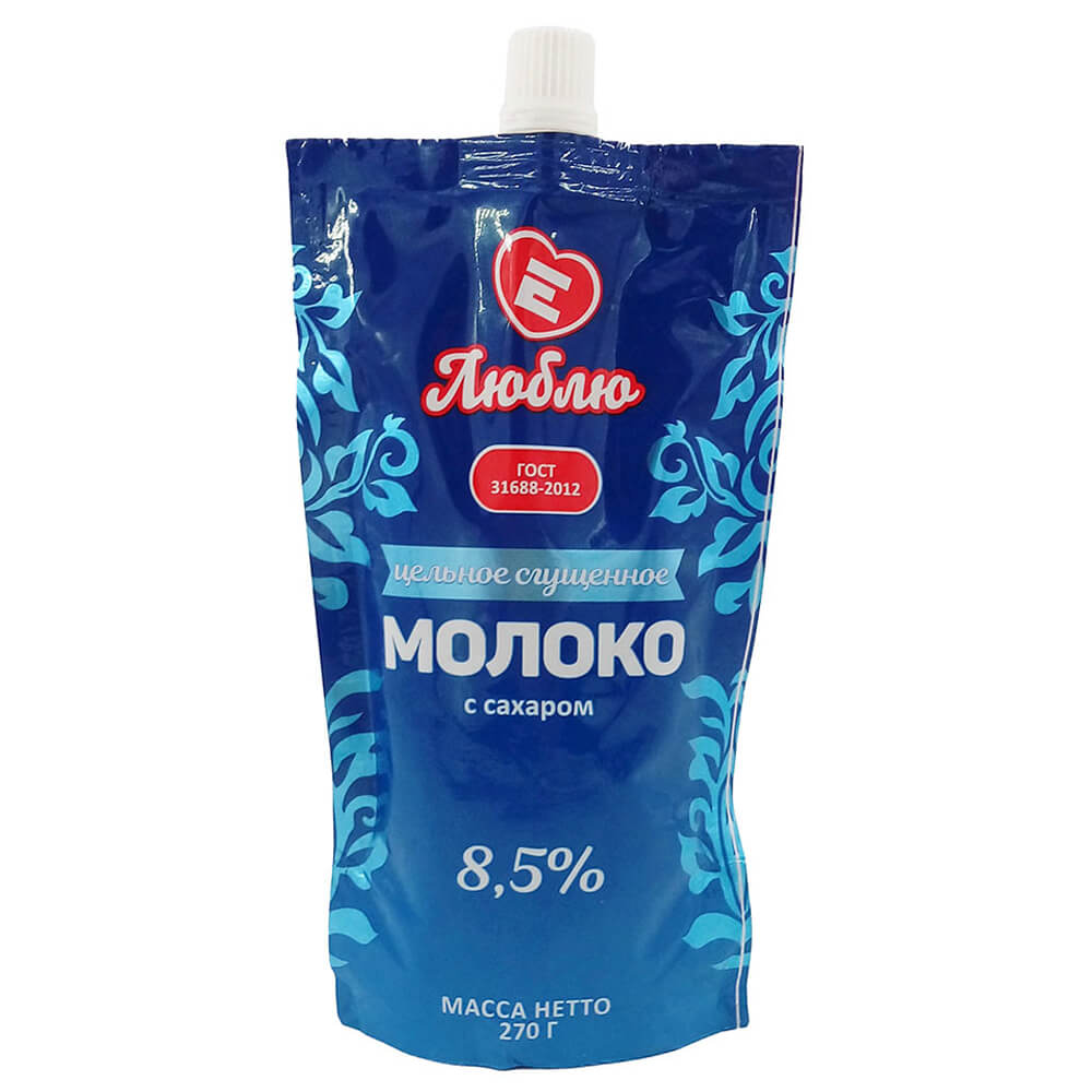 Молоко цельное сгущенное с сахаром ГОСТ, 270г, 8.5%, дой-пак
