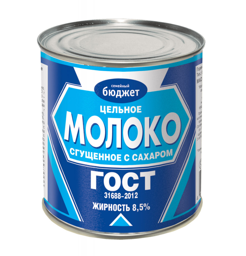 Молоко цельное сгущенное цельное с сахаром ГОСТ, 370г, 8.5%, жест.упаковка