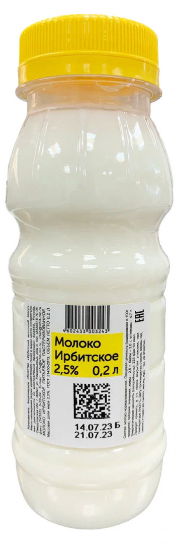 Молоко пастеризованное, 200мл, 2.5%, пласт.бутылка