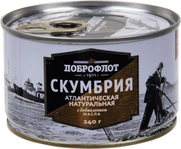 Скумбрия атлантическая натуральная с добавлением масла, 240г, жест.упаковка