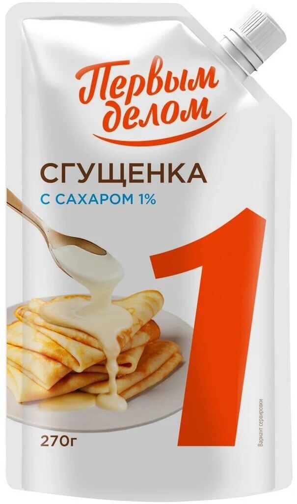 Сгущенка с сахаром, 270г, 1%, дой-пак