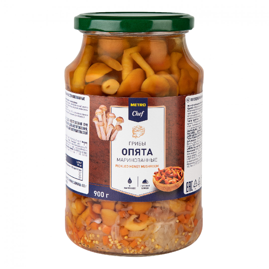 Грибы опята маринованные, 900г, стекло