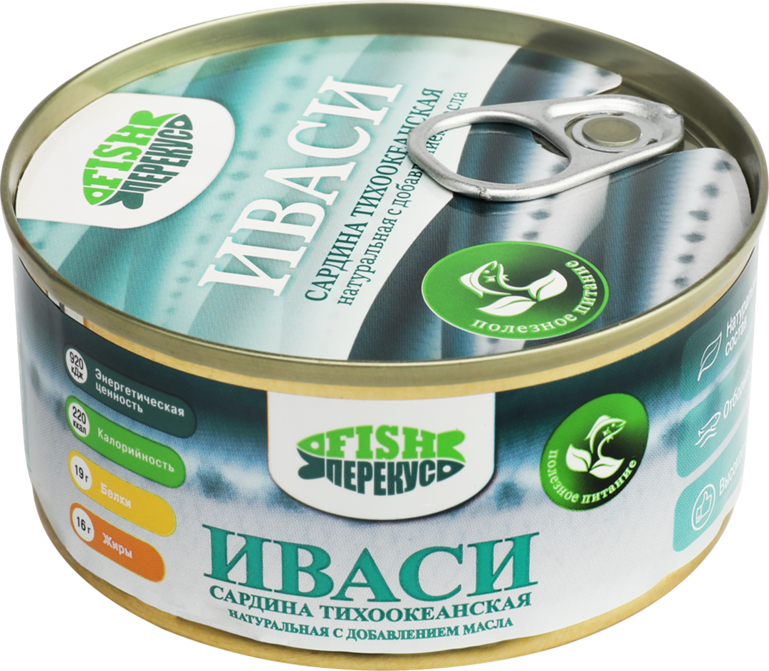 Сардина Иваси натуральная с добавлением масла, 160г, жест.упаковка