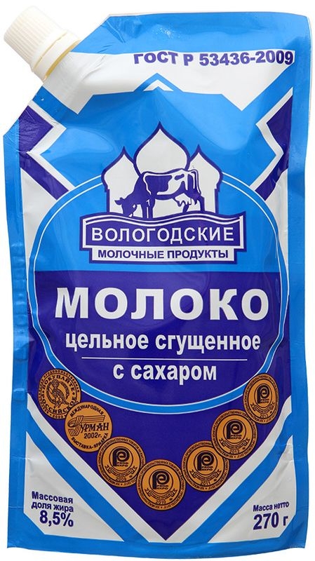Молоко цельное сгущенное с сахаром, 270г, 8.5%, дой-пак