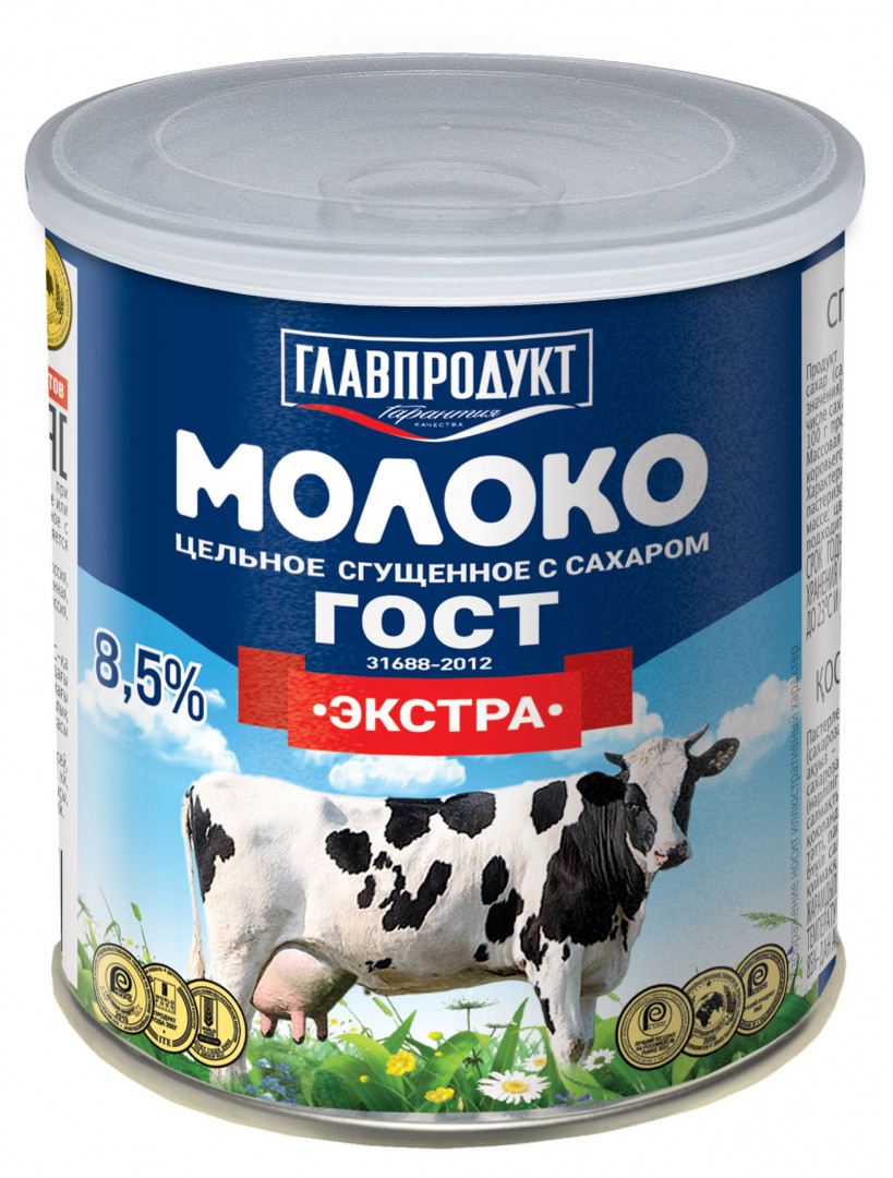 Молоко цельное сгущенное с сахаром Экстра ГОСТ, 380г, 8.5%, жест.упаковка